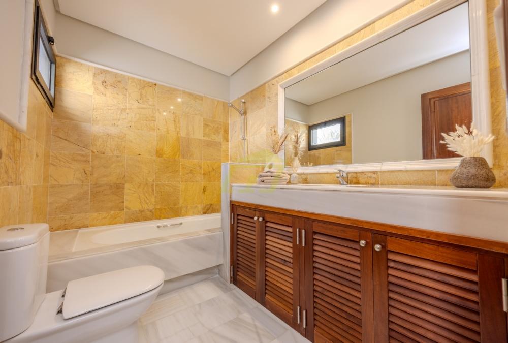 Im Inneren befindet sich das elegante separate Esszimmer, das sowohl für Familienessen als auch für die Bewirtung von Gästen in beeindruckendem Stil konzipiert ist. Alles ist sorgfältig eingerichtet, um die Qualität der Villa zu unterstreichen.
